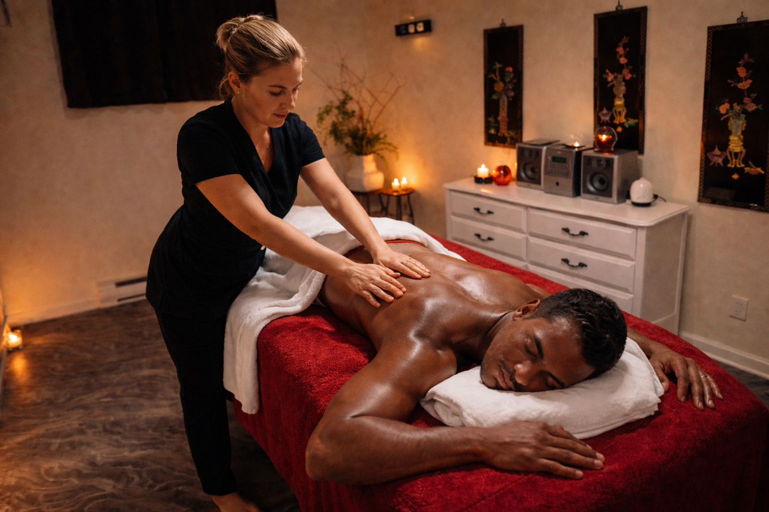 LES MASSAGES SONT OFFERTS EN DUO DANS 2 SALLES JUXTAPOSÉES EN MÊME TEMPS