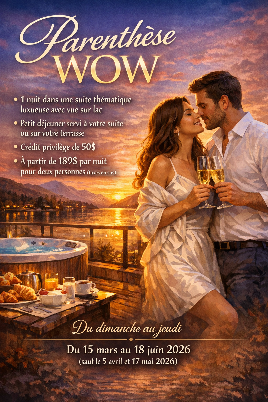 Du dimanche au jeudi du 15 mars au 18 juin 2026 (sauf le 5 avril et 17 mai 2026)