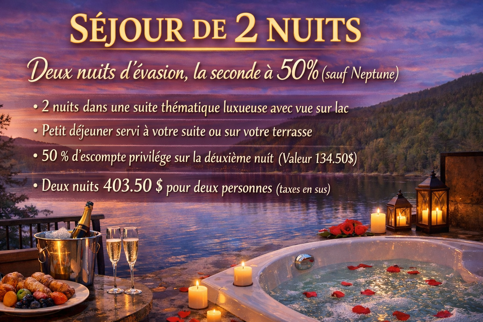 et recevez les promotions et événements spéciaux de l’Auberge Aux Nuits de Rêve.